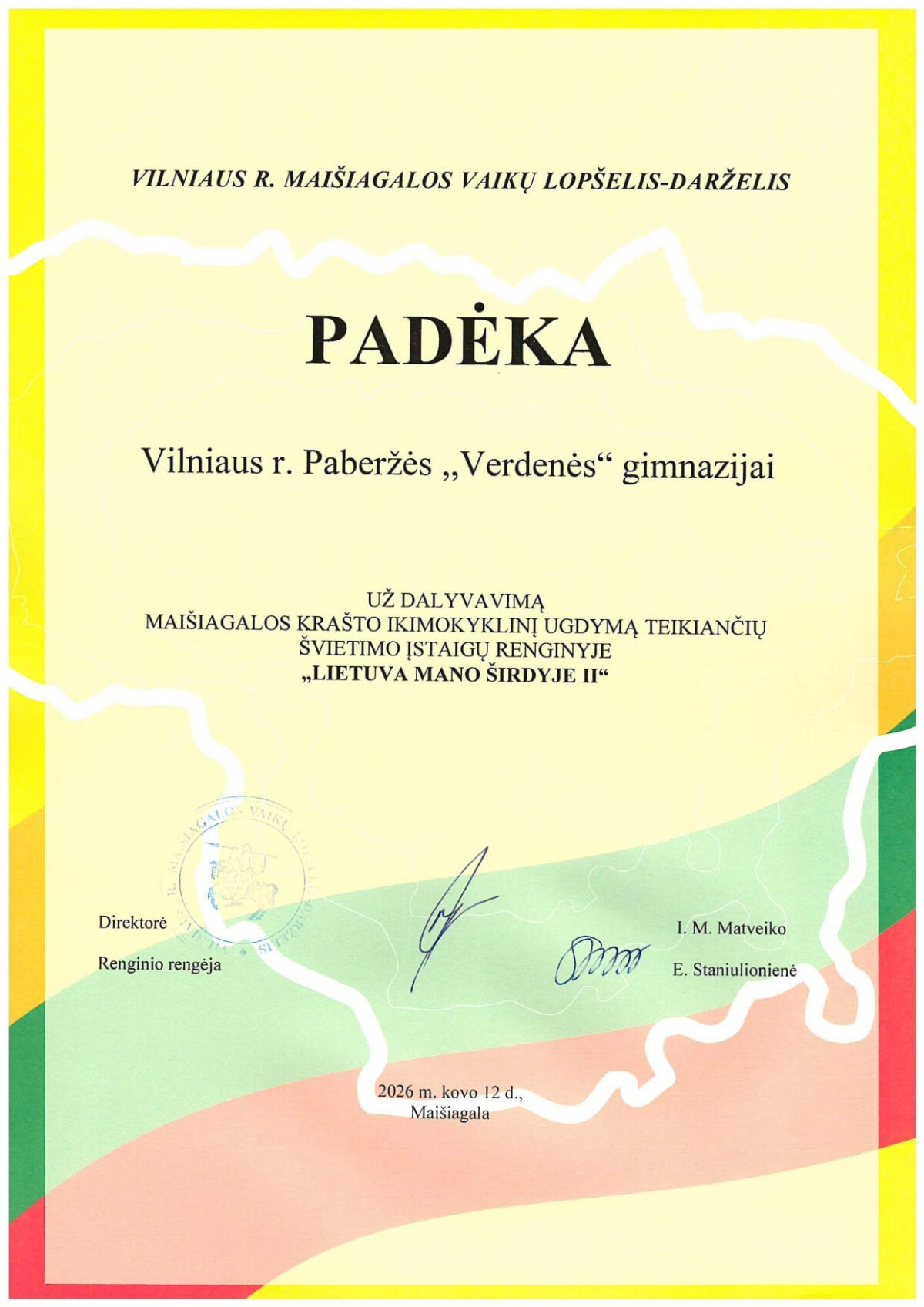 Vilniaus r. Maišiagalos krašto ikimokyklinio ugdymo įstaigos tęsia gražią tradiciją – Lietuvos Nepriklausomybės atkūrimo dieną švęsti drauge. Šiųmetis renginys „Lietuva mano širdyje II“ tapo ypatinga pilietiškumo ir kūrybiškumo pamoka, kurioje ryškiausiai suspindo patys jauniausi mūsų krašto talentai.